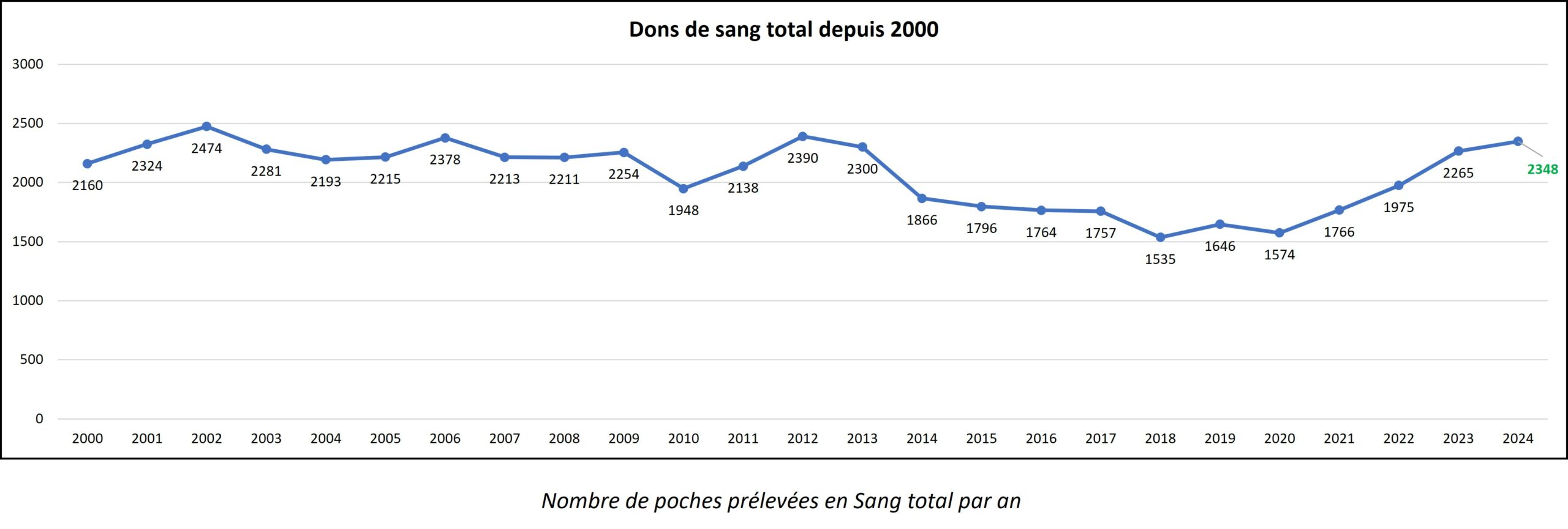 • Augmentation des dons de sang total de 3,6 % par rapport à 2023
